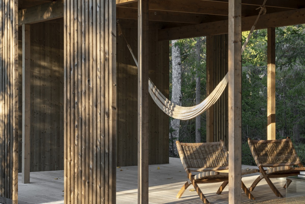 Zastřešená terasa modulového domu nabízí dostatek prostoru pro odpočinek