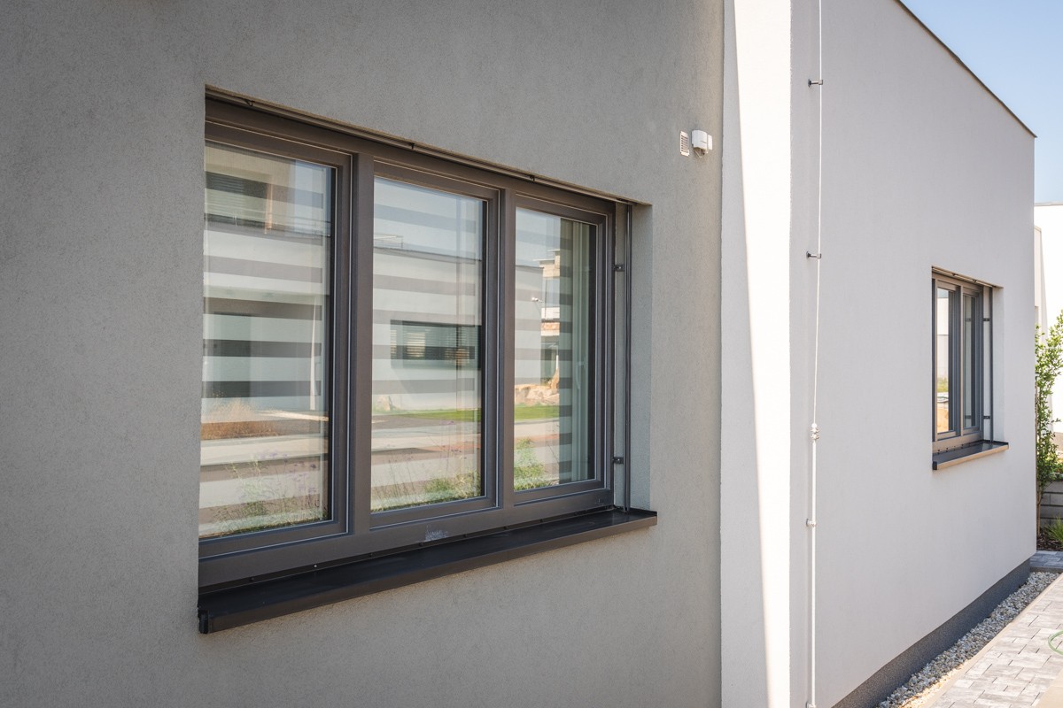 V oknech dřevostavby jsou trojskla, která pomáhají odhlučnění domu