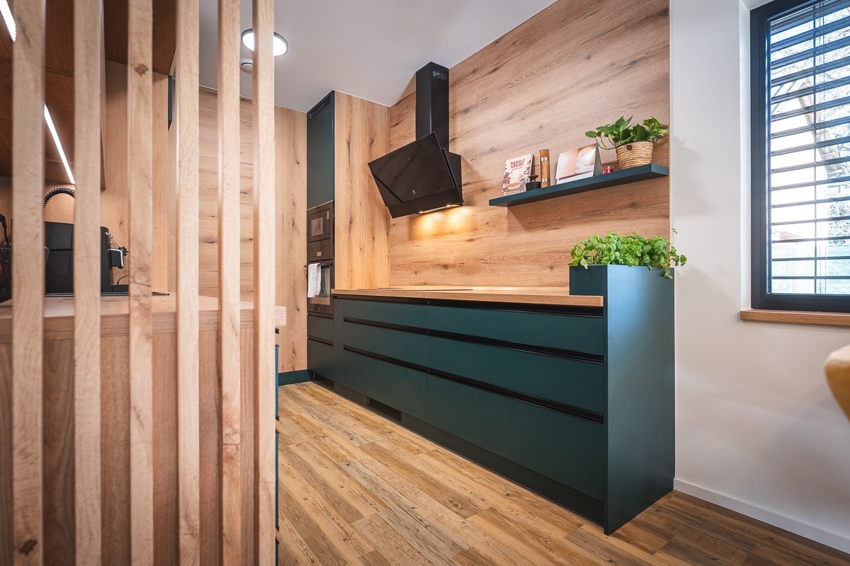 Kuchyni si majitelka navrhla sama. „Chtěla jsem se vyhnout stereotypu,“ říká hrdě majitelka