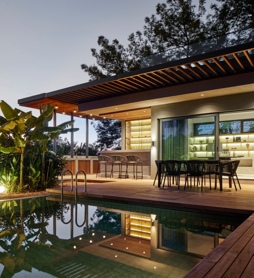 Turek má bazén a u něj bar s několika stoličkami. Když se setmí, automaticky se rozsvítí světla kolem vody, čímž celé místo dostane úplně jinou atmosféru