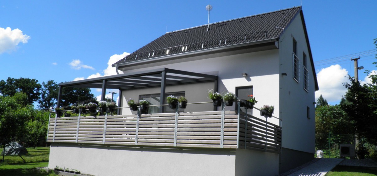 Dům na menším pozemku získal díky zastřešené terase plnohodnotný venkovní prostor