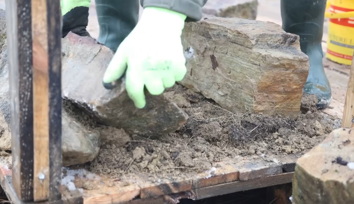 Na dřevěnou podlahu vysypal hlínu a začal do ní usazovat přinesené kameny jako základ pod kamna