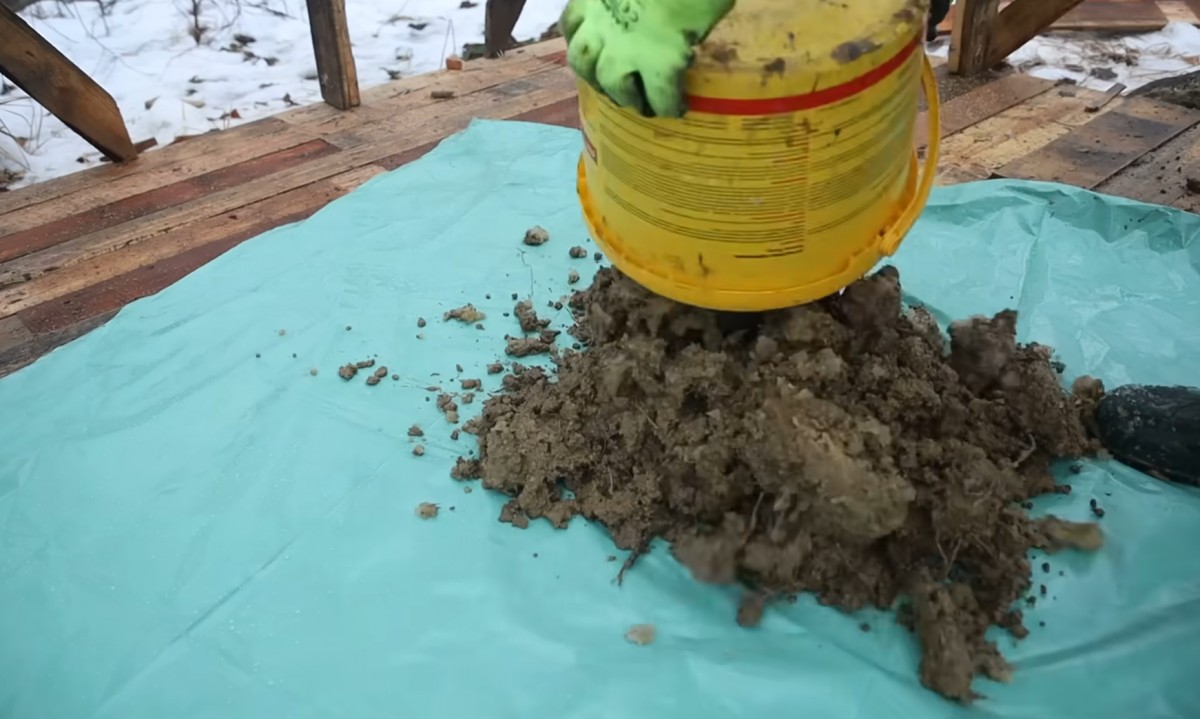 Adam vysypal nasbíranou hlínu na plachtu a začal ji připravovat na maltu