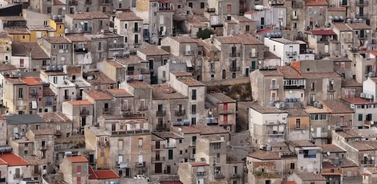 Hustá zástavba starého Mussomeli, kde mnoho domů zůstalo prázdných. Právě z těchto opuštěných staveb vznikl program „domů za jedno euro“