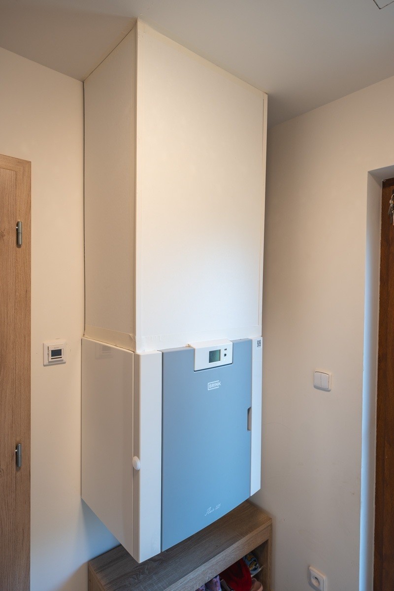 Majitelka má v domě podlahové vytápění s elektrickými topnými kabely a v neposlední řadě i nucené větrání s rekuperací