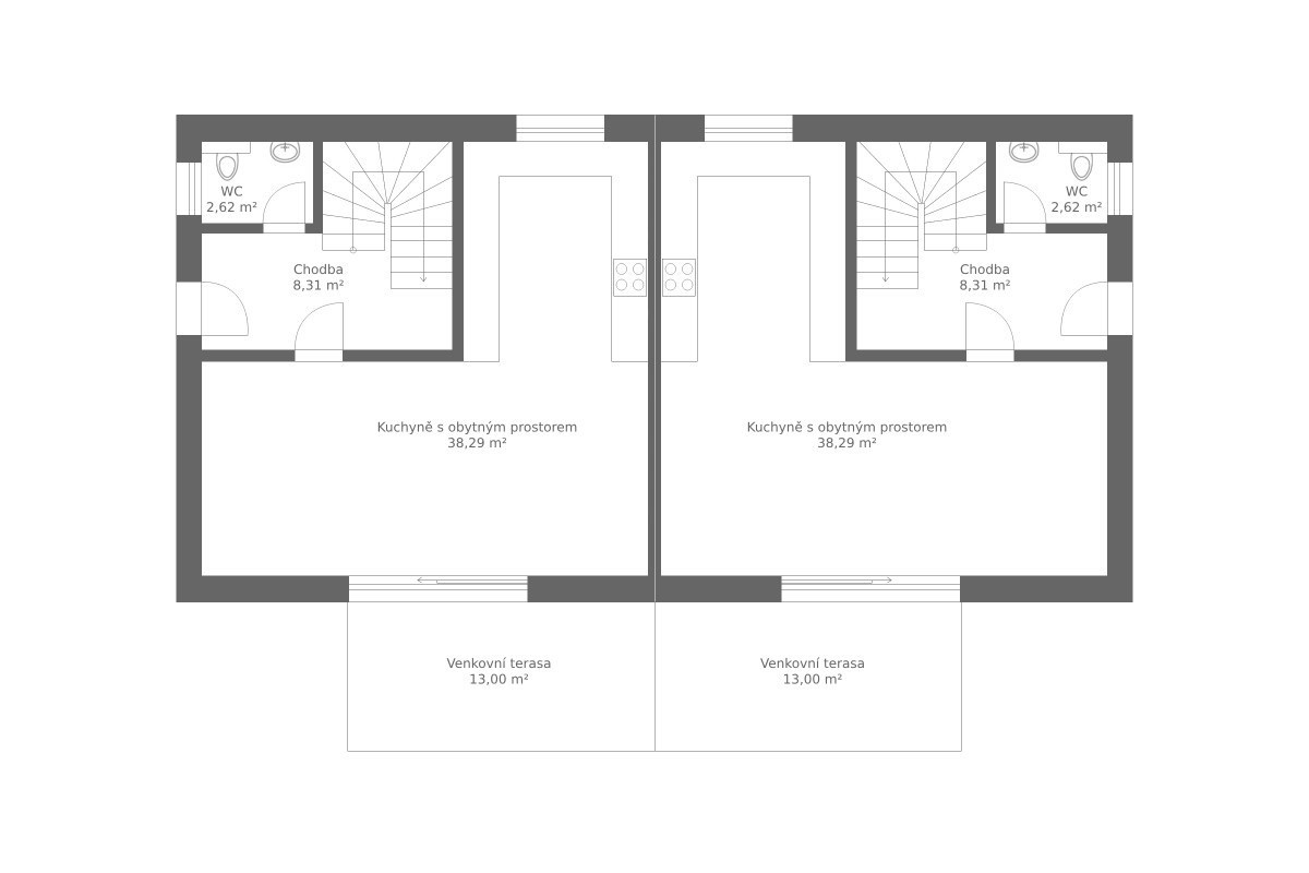 Dispozice domu je jednoduchá a dobře vyřešená – nemají žádné chodby, což je prostor v domě, který je nejméně využívaný