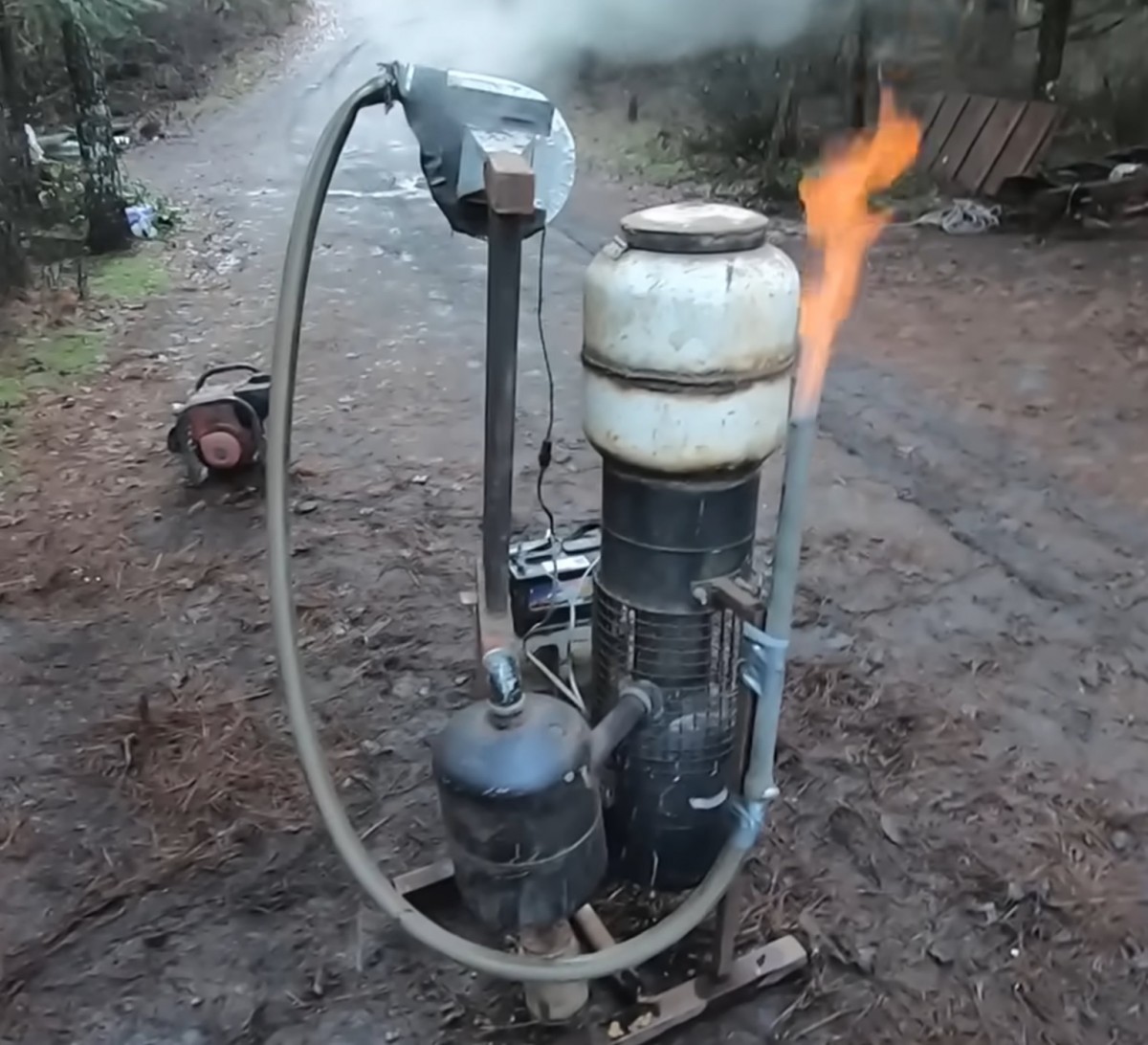 Na první pohled to vypadá jako zvláštní soustava plechových nádob, trubek a hadic, které by člověk spíš čekal na vrakovišti než na dvorku rodinného domu. Přesto právě tady vznikl projekt, který v sobě spojuje starou technologii, technické nadšení i velmi současnou otázku energetické soběstačnosti. Autorem je technický nadšenec a kutil, který si svépomocí postavil dřevoplynový generátor, tedy zařízení, které dokáže z obyčejného dřeva vyrobit hořlavý plyn a ten následně využít k výrobě elektřiny. Nejde o laboratorní experiment, ale o funkční stroj, který je schopen dlouhodobě dodávat přibližně 2,5 kilowattu elektrického výkonu, a to při spalování dřevních pelet. Zásadní přitom je, že místo pelet lze použít i běžné palivové dřevo, což výrazně snižuje provozní náklady.