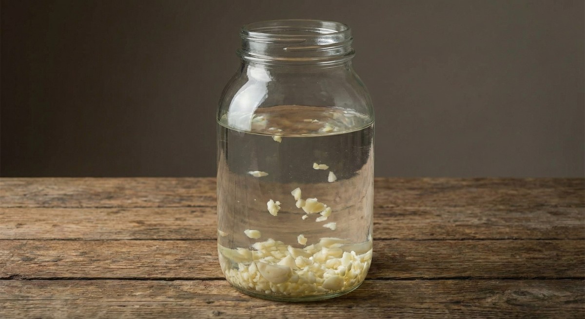 Rozdrcený česnek dejte do čisté zavařovací sklenice a zalijte vodou. Tato směs je základem pro fermentovaný postřik