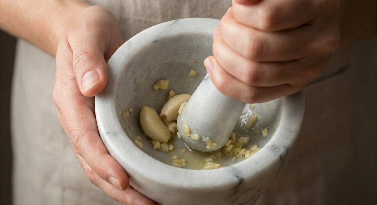 Pro uvolnění účinné látky allicinu je nutné česnek před použitím narušit. Nejlepší je stroužky důkladně rozdrtit v hmoždíři, aby se z nich uvolnila šťáva