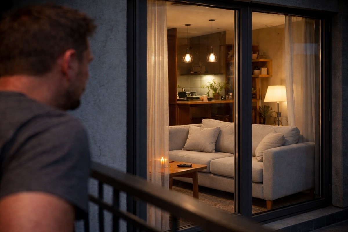 Velká francouzská okna dokážou proměnit obývák v otevřenou vitrínu. Večer, když se uvnitř rozsvítí, může být zvenčí vidět téměř celý interiér