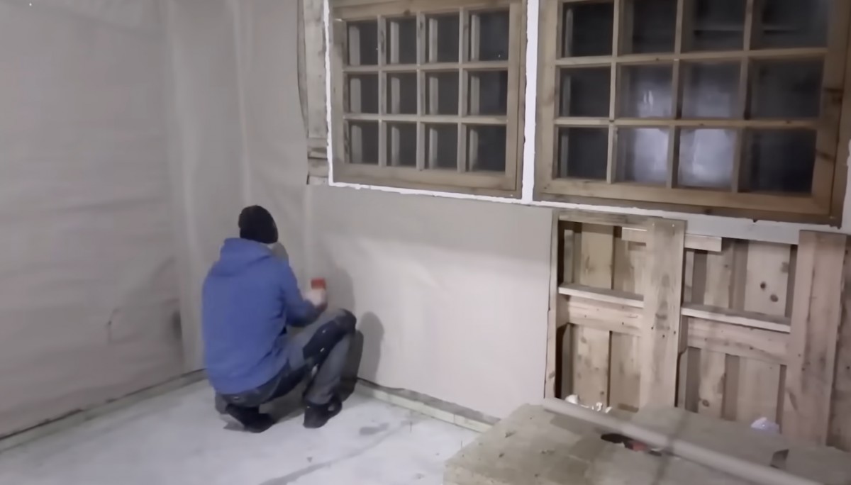 Spáry kolem oken a napojení stěn byly dotmeleny a zabroušeny. Díky tomu je interiér připraven na finální úpravu povrchů a užívání