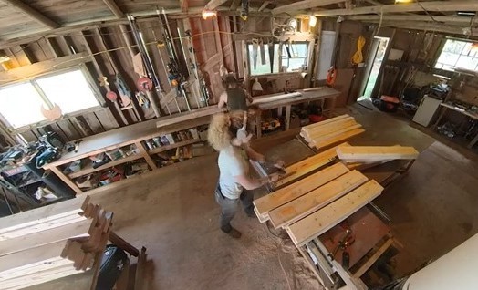 V dílně manželé připravili dřevěné fošny, které postupně rozřezali na užší latě pro konstrukci panelů. Díky tomu získali rovnější materiál, než jaký se běžně prodává v hobbymarketech
