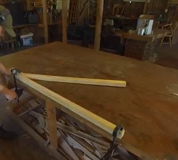 Na pracovním stole si připravili latě do tvaru budoucího panelu. Před spojením ještě zkontrolovali správné úhly i rozměry konstrukce