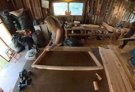 Dřevěné police a další vnitřní vybavení manželé nejprve sestavili nanečisto v dílně. Díky tomu mohli v klidu zkontrolovat správné rozměry