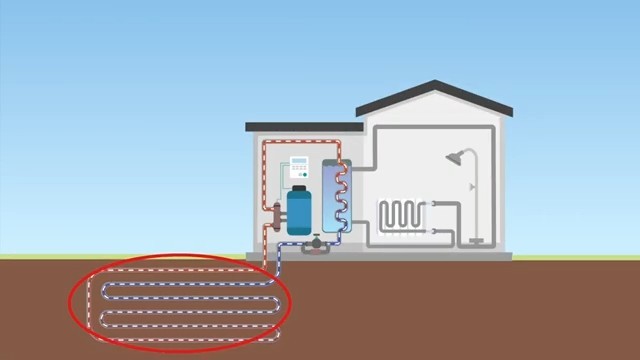 Napojení horizontálního kolektoru na dům – ukázka přenosu tepla mezi zemí a systémem vytápění