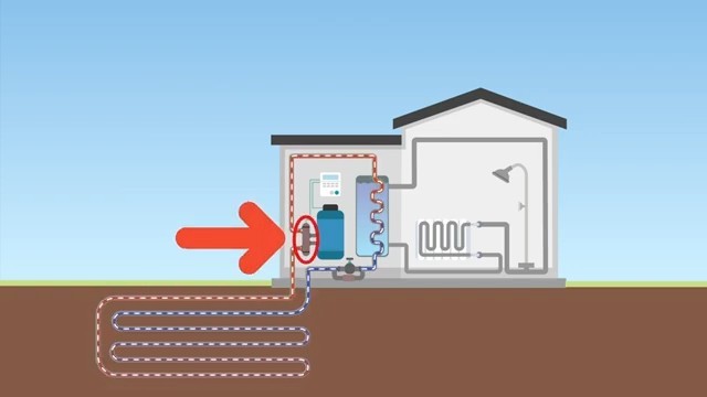 Princip fungování tepelného čerpadla. Výměna tepla mezi primárním (země) a sekundárním (dům) okruhem