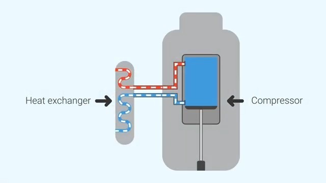 Další fáze cyklu: zesílení teploty pomocí kompresoru a předání do systému