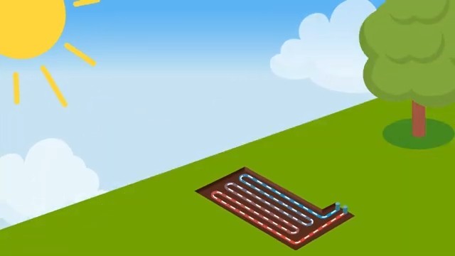 Horizontální kolektor uložený v zemi zachytává teplo ze slunce a okolní půdy