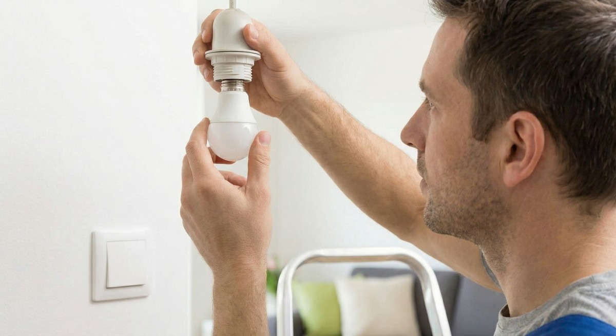 Vyjměte novou žárovku z obalu. Vložte ji do objímky a otáčejte ve směru hodinových ručiček. Buďte opatrní, abyste na žárovku příliš netlačili, aby nedošlo k jejímu poškození