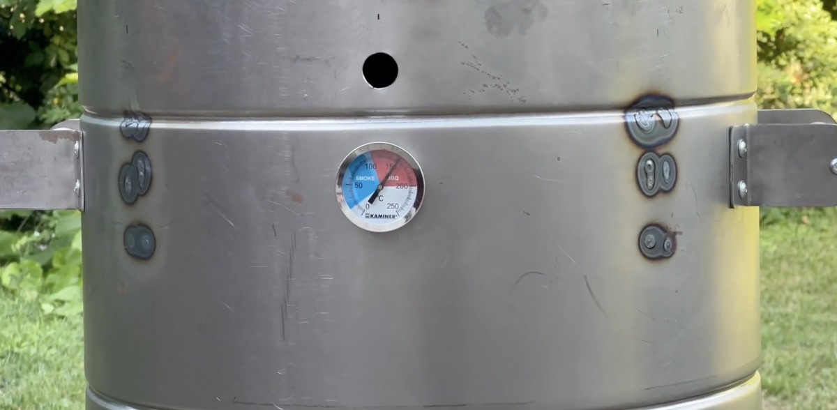 V plášti sudu je zabudovaný teploměr pro kontrolu vnitřní teploty. Teploměr zobrazuje stupnici v rozmezí přibližně 0 až 250 °C