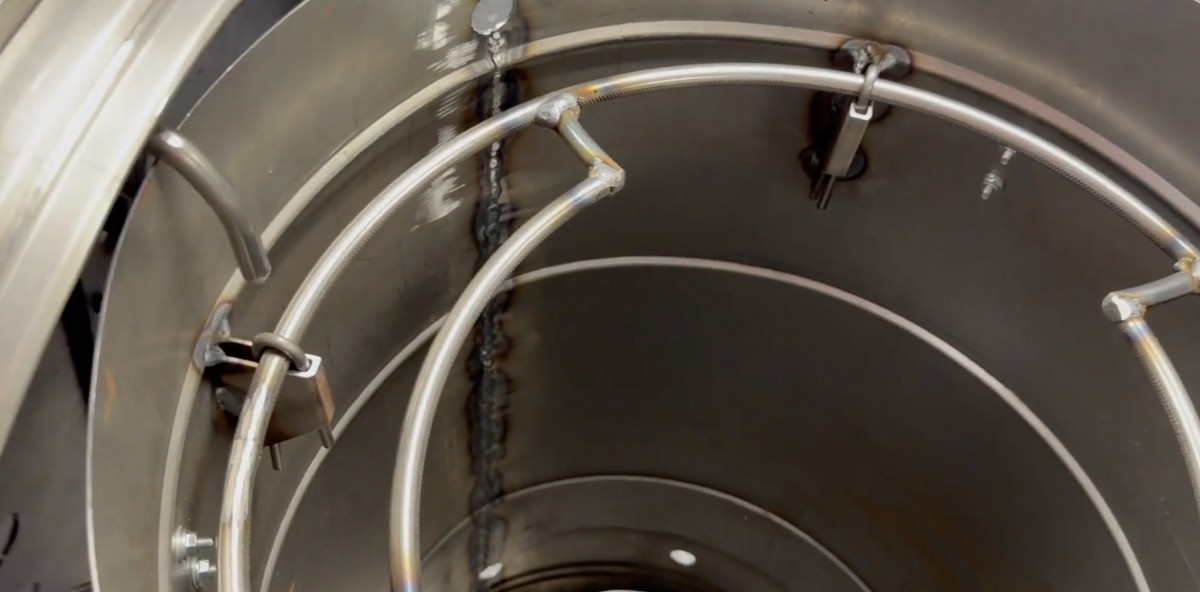 Na horním kruhu lze zavěsit háky s masem. Kruhy jsou kotveny k plášti pomocí svařených držáků