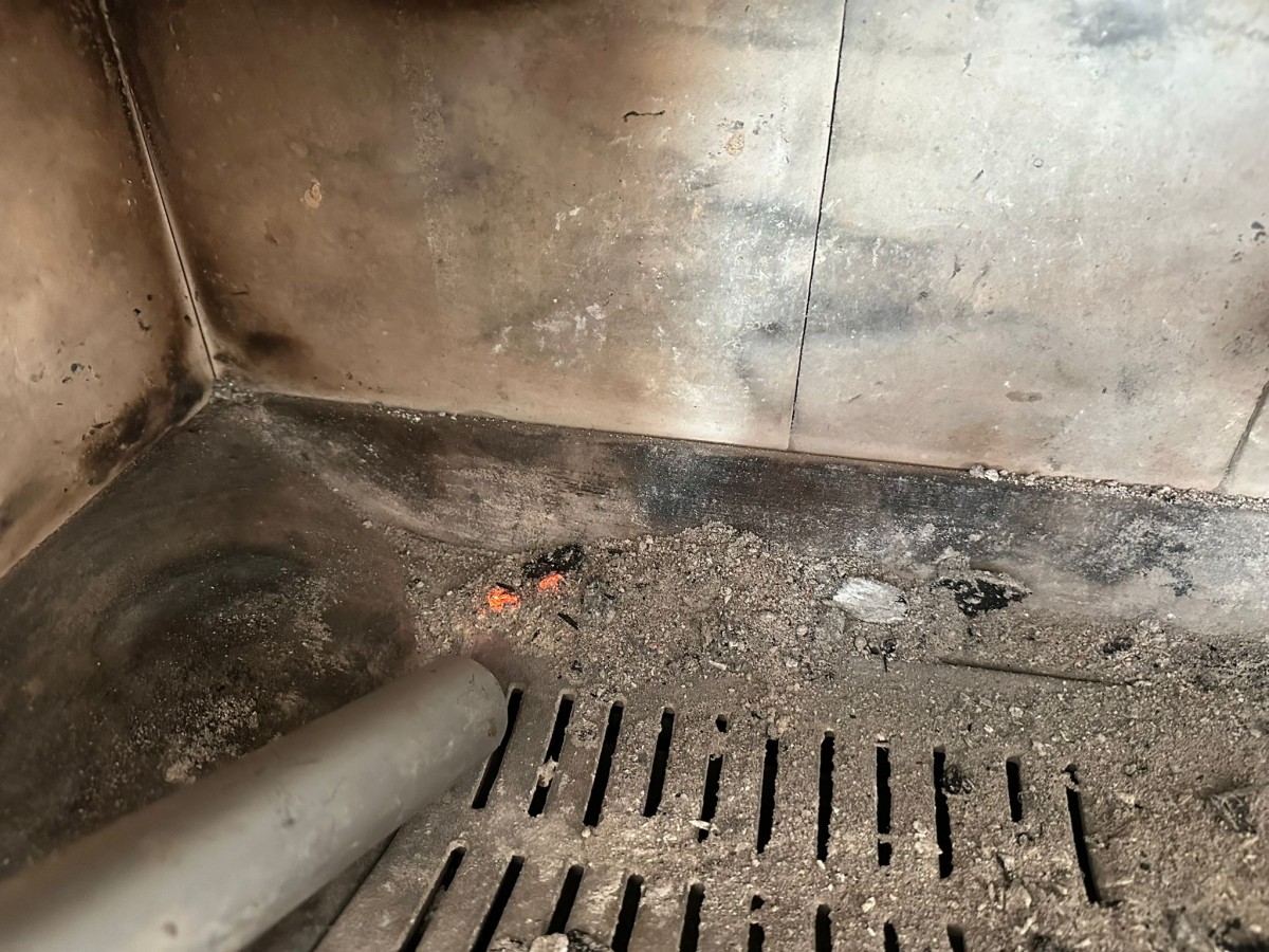 Zbytky popela, který zůstal v kamnech, Jakub vysaje vysavačem na popel. Díky takovému pečlivému úklidu je topeniště naprosto čisté