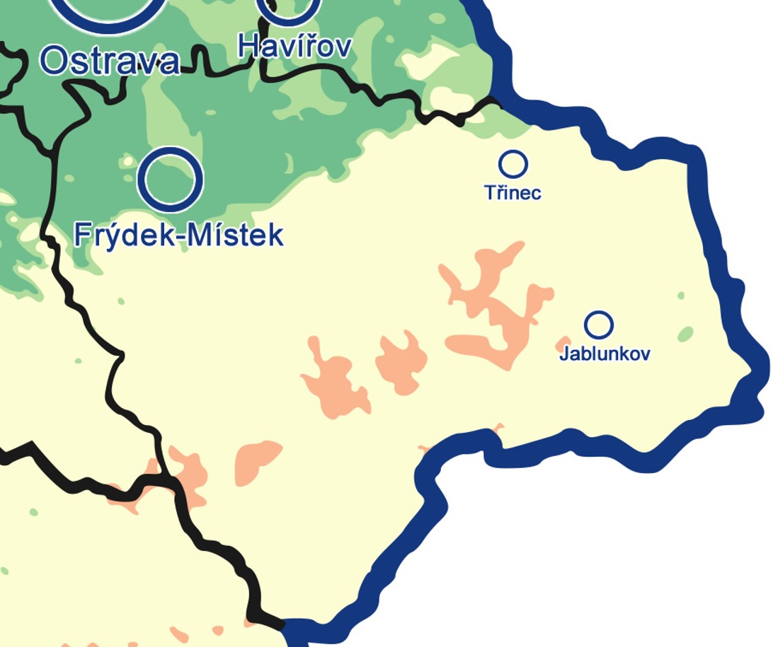 Okres Frýdek-Místek hraje všemi barvami. Pravděpodobnost růstu hub zde bude nízká, střední, vysoká i velmi vysoká
