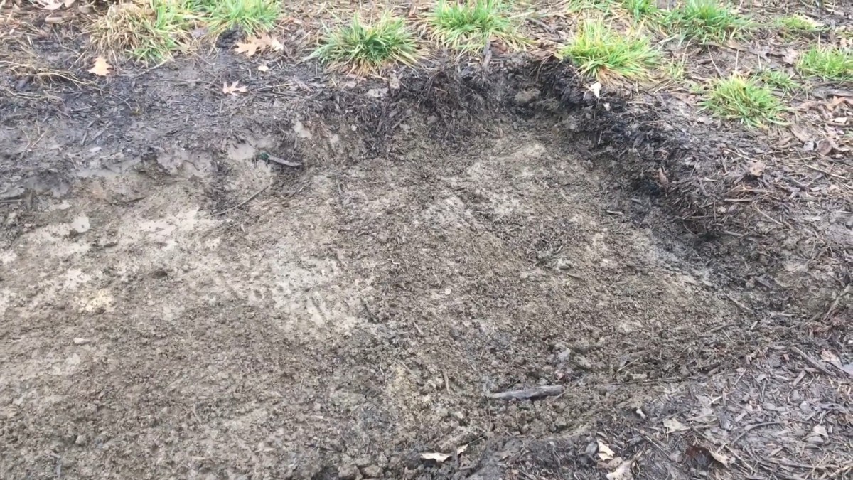 Detailní pohled na vyčištěný výkop nám ukazuje čisté plátno pro vrstvení organického materiálu. Správná příprava terénu je absolutní základ pro to, aby se nám záhon v budoucnu nerozjížděl do stran.