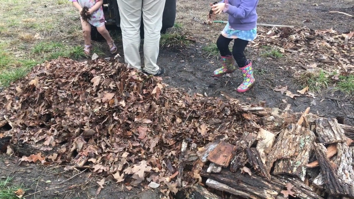 Pořádná taneční párty na záhonu pokračuje a celá struktura si viditelně sedá. Důkladným zhutněním se snažíme odstranit co nejvíce velkých vzduchových kapes mezi poleny.