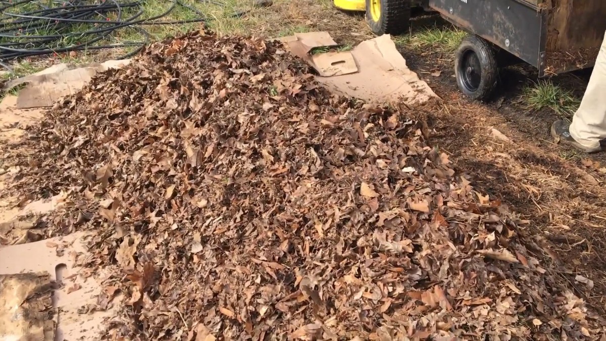 Zde vidíte hotovou ochrannou zónu kolem celého záhonu. Díky kombinaci kartonu a štěpky jsme získali esteticky čistý a hlavně naprosto bezúdržbový okraj pro náš permakulturní projekt.