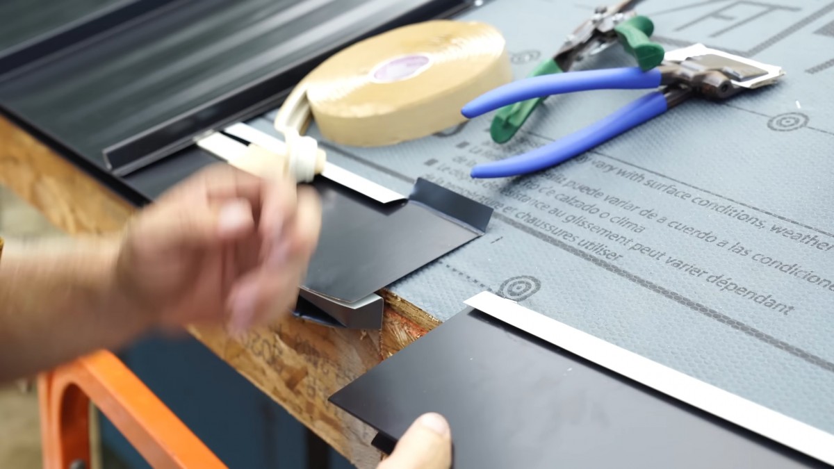 U štítu si nechte mírný přesah a vytvořte rohový detail. Zabráníte tím průniku hnaného deště a větru pod krytinu.