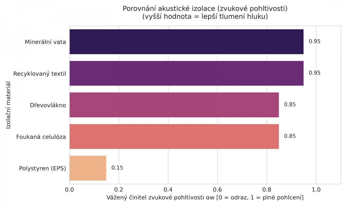 Porovnání textilní izolace z hlediska akustického zatlumení. Patří mezi nejlepší