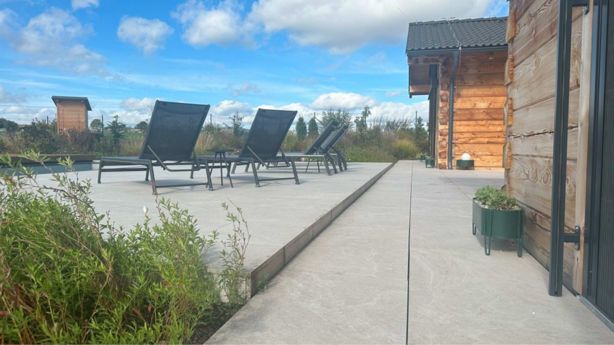 Venkovní dlažbu si subdodavatelé špatně vyměřili a jejich chybou tam vznikl tento schodek. Majitelé na něj museli přidělat LED svítidlo, aby šel v noci vidět
