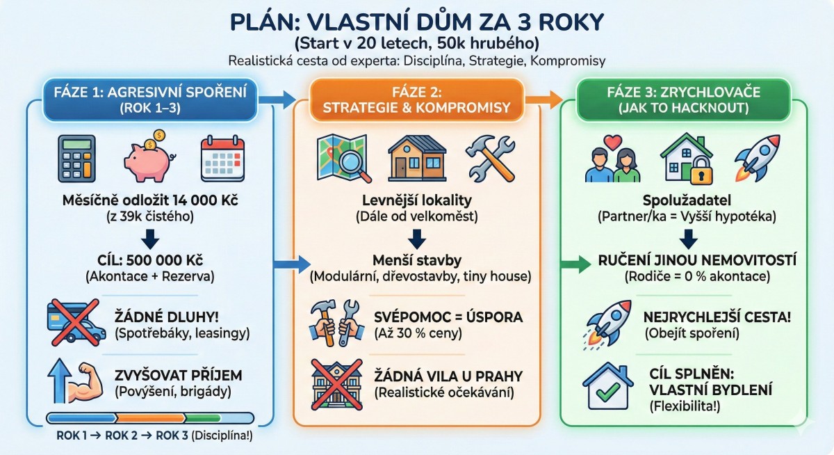 Cesta k vlastnímu bydlení ve dvaceti letech a s nulovými úsporami zní pro mnohé jako sci-fi. Skutečnost je taková, že to možné je, ale vyžaduje to naprostou změnu myšlení, obrovskou dávku sebedisciplíny a ochotu přistoupit na zásadní kompromisy. Výchozí bod ve formě relativně dobrého platu, nízkého věku, ale i absence úspor, není neřešitelný. Pokud si tento standard udržíme a přidáme k němu neprůstřelný finanční plán, můžeme za tři roky skutečně stát ve dveřích vlastního domu. Pojďme si tento plán podrobně rozebrat a přetavit odhodlání do tvrdé reality formou ucelené strategie.