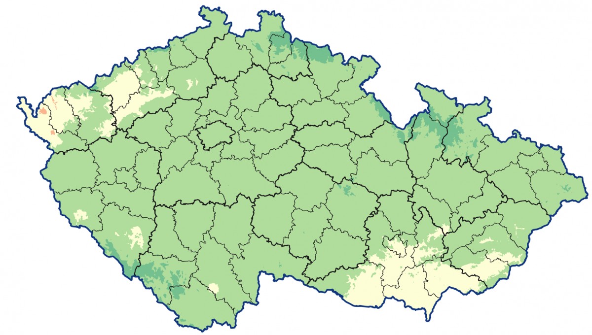 Barvy znázorňují pravděpodobnost růstu hub: Velmi nízká – tmavě červená, Nízká – oranžová, Střední – světle žlutá, Vysoká – světle zelená, Velmi vysoká – tmavě zelená. Přesnou škálu najdete na konci galerie.