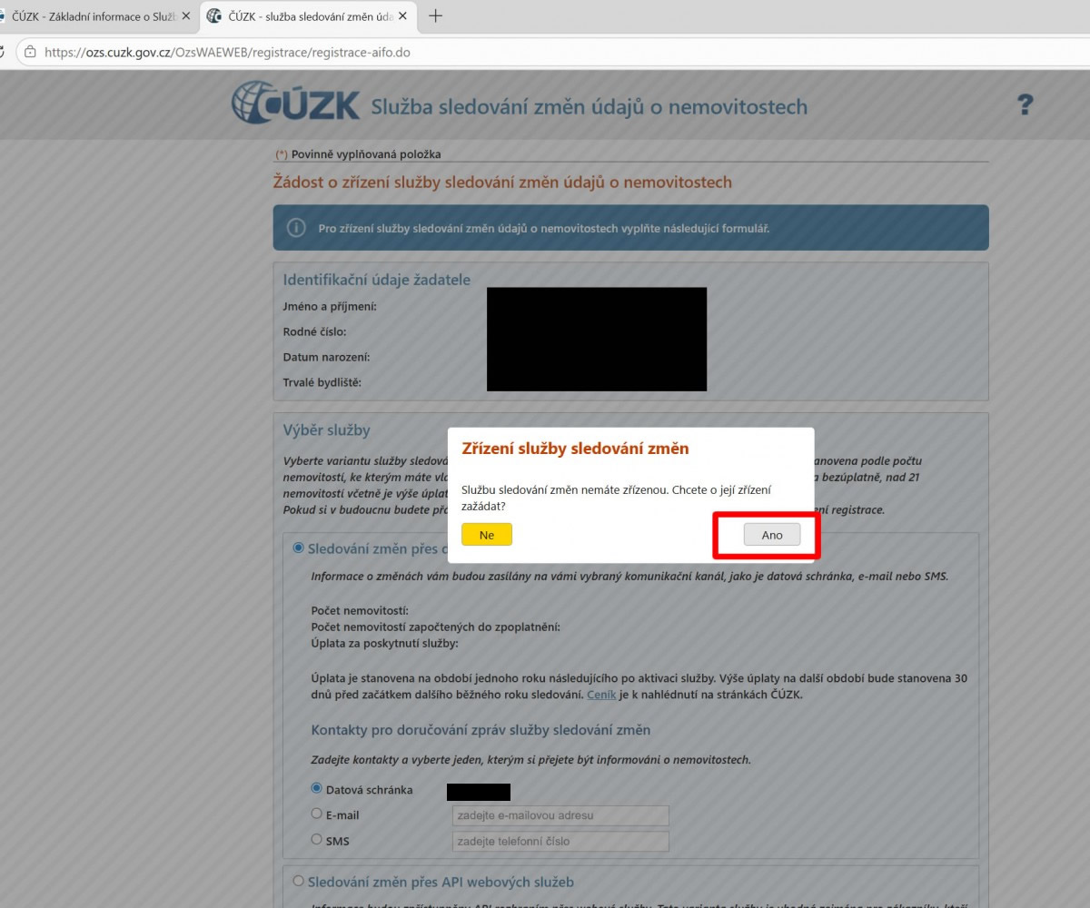 Pokud jsme ve službě poprvé, zeptá se nás to, zda chceme službu aktivovat. Klikneme ano