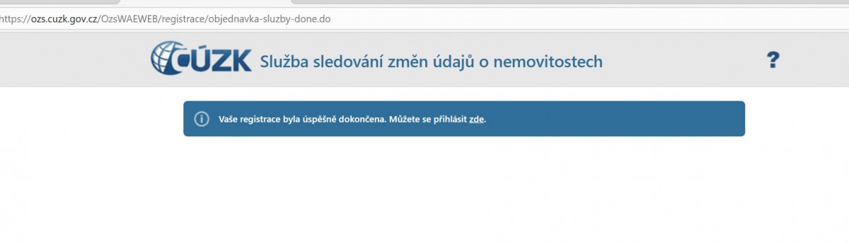 Systém potvrdí úspěšnou registraci a nabídne nám možnost se přihlásit