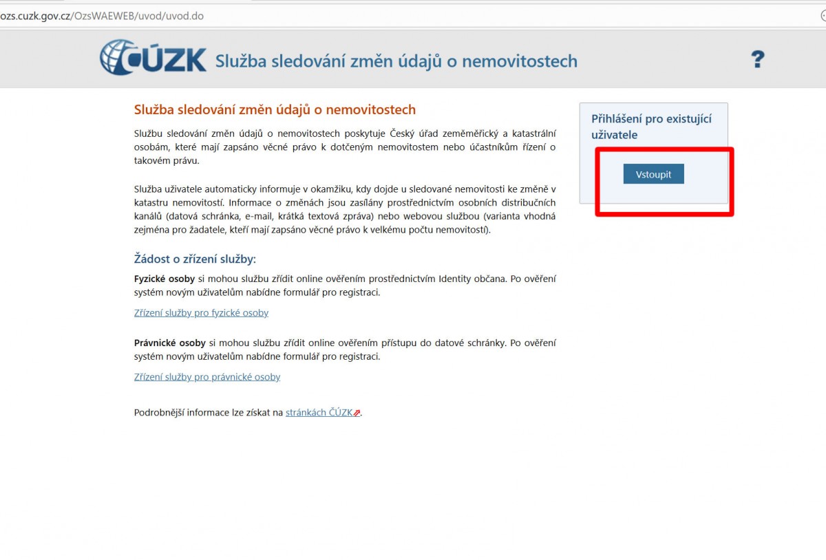 Pomocí tlačítka vstoupit se dostaneme do přehledného panelu kde můžeme sledování přenastavit. Současně nám přijde datovkou informace o nastavení