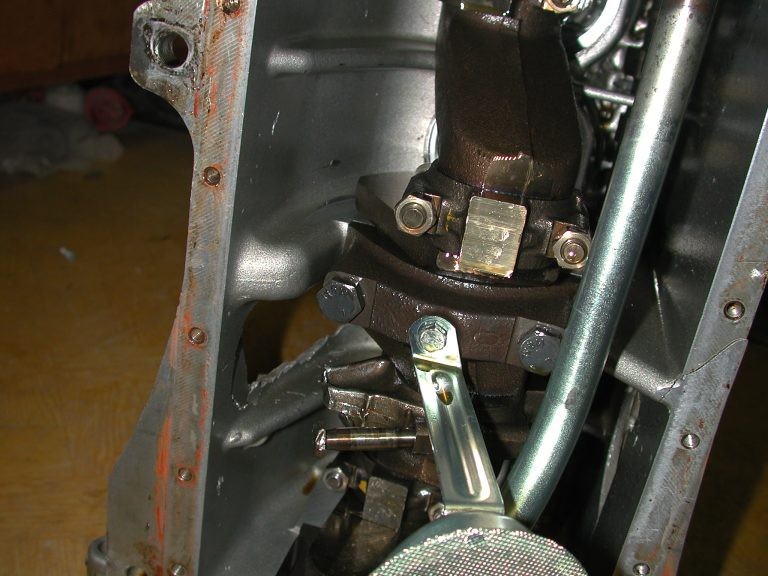 Na fotografii je vnitřní část poškozeného motoru z kogenerační jednotky, kde je vidět ulomená ojnice a prasklý blok motoru. Ojnice se uvolnila z klikového hřídele, prorazila stěnu skříně a způsobila úplnou destrukci pohonné jednotky. Tento typ závady býval u domácích tepláren častý, protože motor musel pracovat dlouhodobě v trvalém zatížení, na které nebyl původně konstruován.