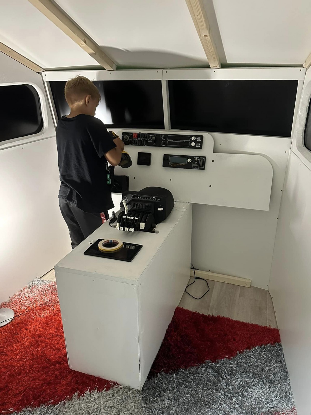 Velký vzor viděl ve svém dědečkovi, který celý život létal nad Českou republikou. Chtěl být jako on, a tak mu jeho otec postavil letecký simulátor s reálným kokpitem. Kdo by řekl, že konstrukce z KVH hranolů, čtyři monitory a jedna počítačová hra dokážou vykouzlit tolik radosti v dětských očích. Tatínek Michal nás vzal do kokpitu a vysvětlil princip celé konstrukce.