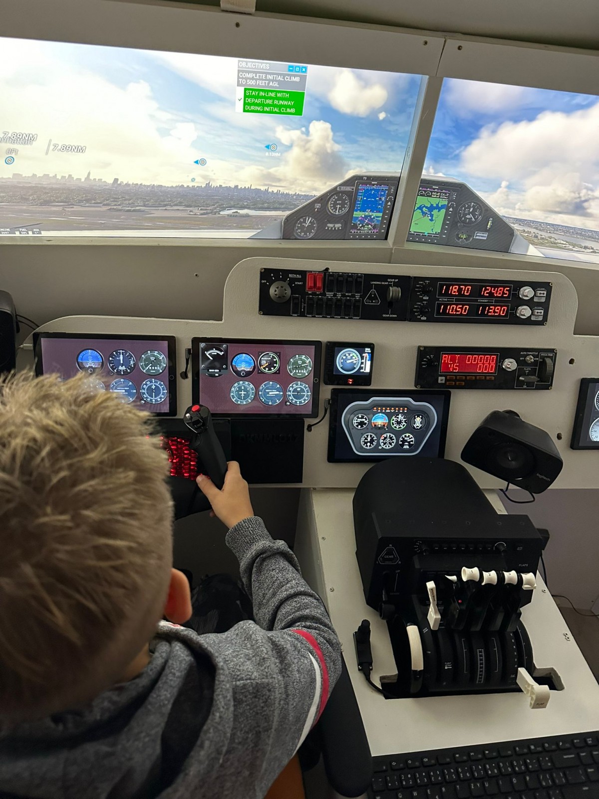 Velký vzor viděl ve svém dědečkovi, který celý život létal nad Českou republikou. Chtěl být jako on, a tak mu jeho otec postavil letecký simulátor s reálným kokpitem. Kdo by řekl, že konstrukce z KVH hranolů, čtyři monitory a jedna počítačová hra dokážou vykouzlit tolik radosti v dětských očích. Tatínek Michal nás vzal do kokpitu a vysvětlil princip celé konstrukce.