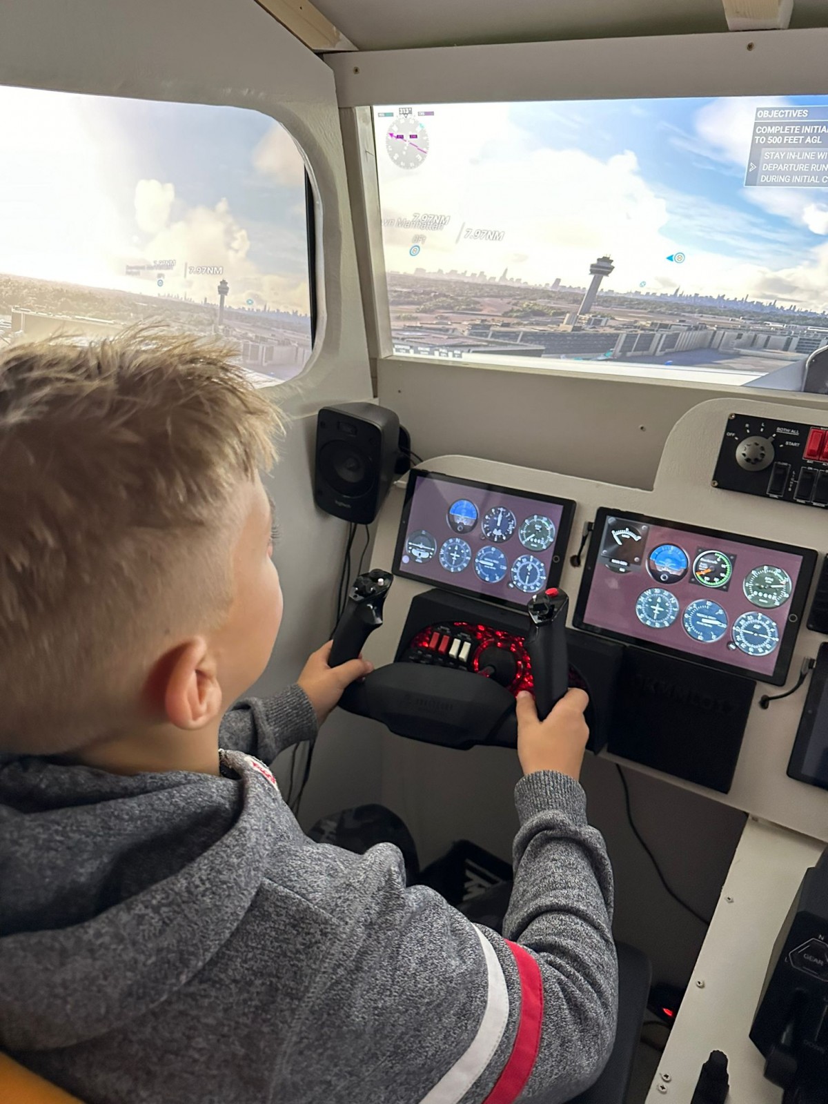 Velký vzor viděl ve svém dědečkovi, který celý život létal nad Českou republikou. Chtěl být jako on, a tak mu jeho otec postavil letecký simulátor s reálným kokpitem. Kdo by řekl, že konstrukce z KVH hranolů, čtyři monitory a jedna počítačová hra dokážou vykouzlit tolik radosti v dětských očích. Tatínek Michal nás vzal do kokpitu a vysvětlil princip celé konstrukce.