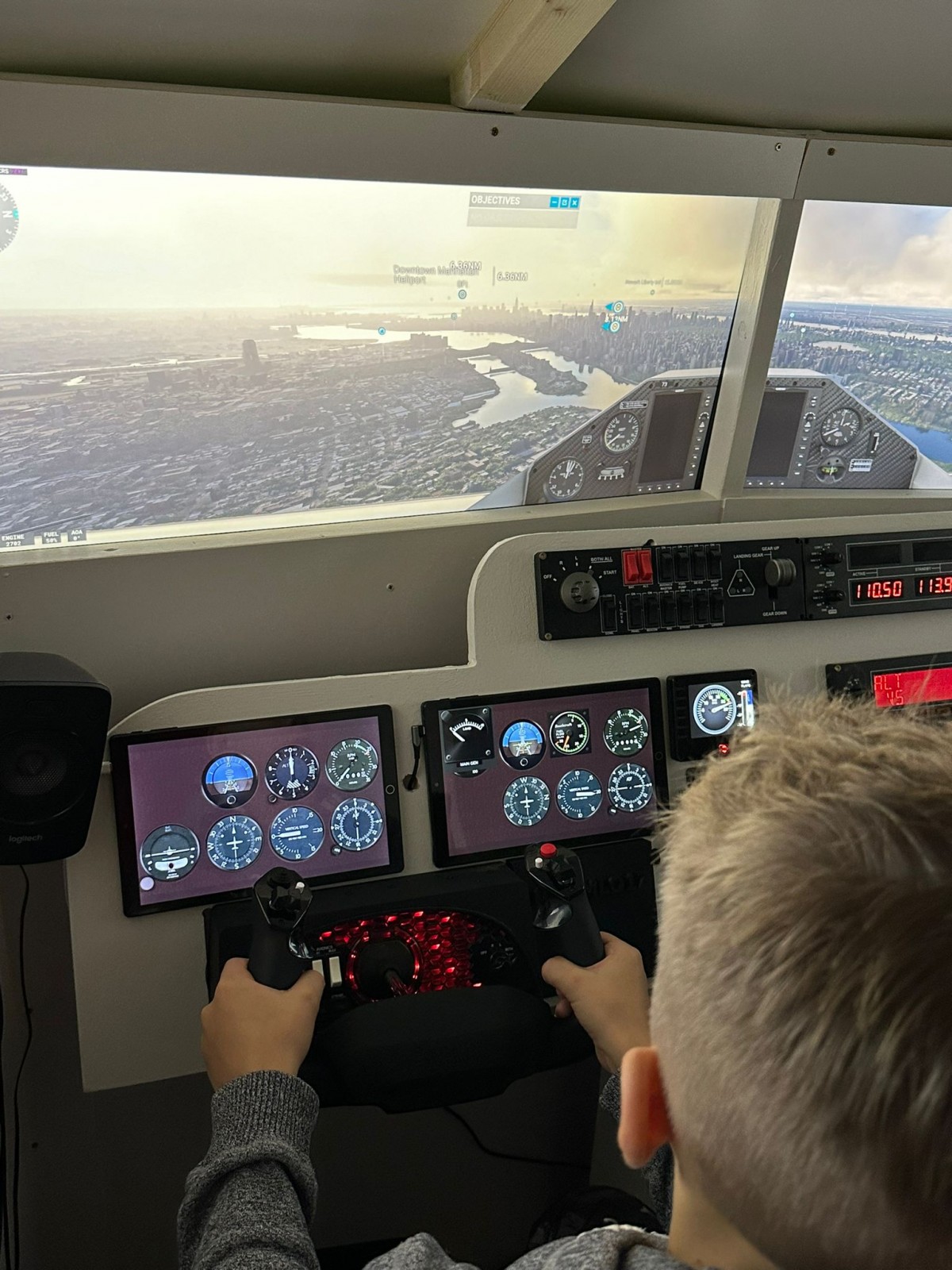 Velký vzor viděl ve svém dědečkovi, který celý život létal nad Českou republikou. Chtěl být jako on, a tak mu jeho otec postavil letecký simulátor s reálným kokpitem. Kdo by řekl, že konstrukce z KVH hranolů, čtyři monitory a jedna počítačová hra dokážou vykouzlit tolik radosti v dětských očích. Tatínek Michal nás vzal do kokpitu a vysvětlil princip celé konstrukce.