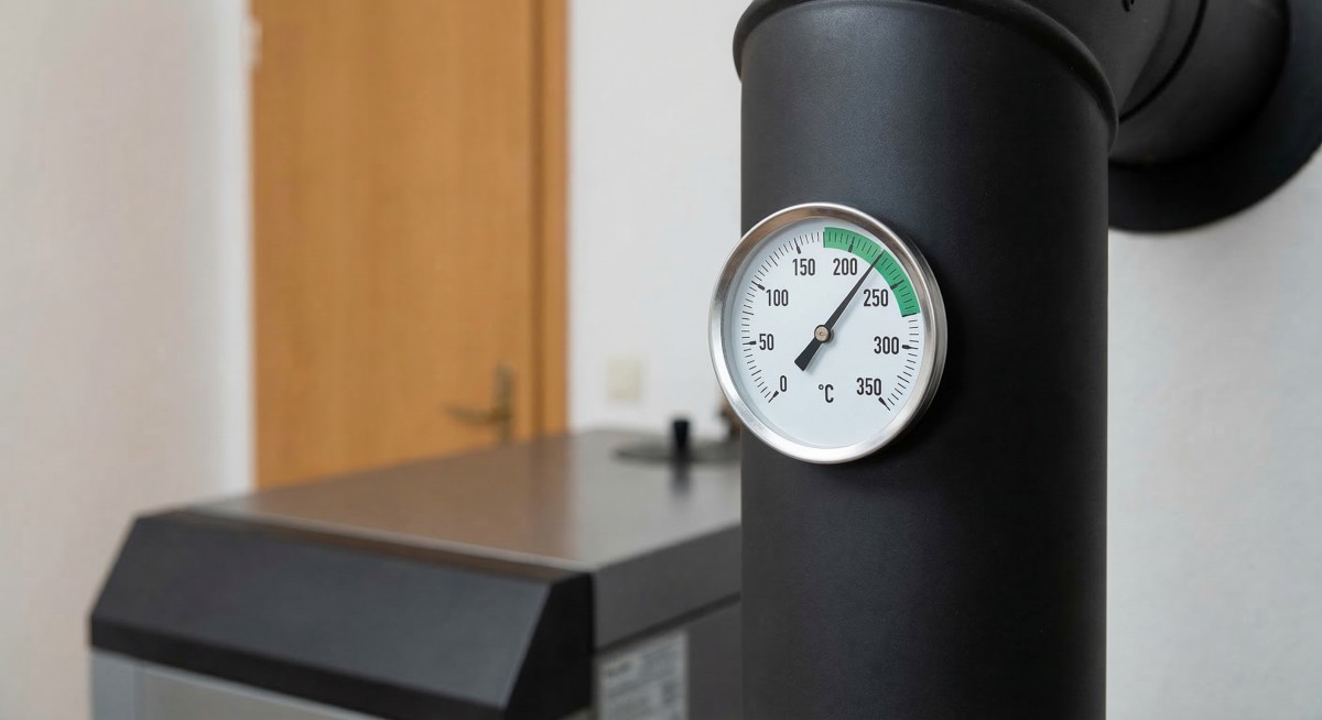 Mangetický měřič teploty spalin se pouze připevní zvenku na spalinové cesty a ukazuje teplotu