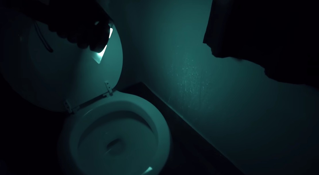 Nepříjemný zápach kolem toalety je přiměl použít baterku, která odhalila zaschlé stopy a znečištění na stěnách a podlaze v bezprostřední blízkosti záchodu