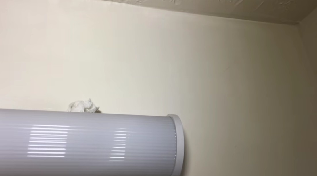 Když se podívali na horní část světla v koupelně, našli starý použitý kapesník