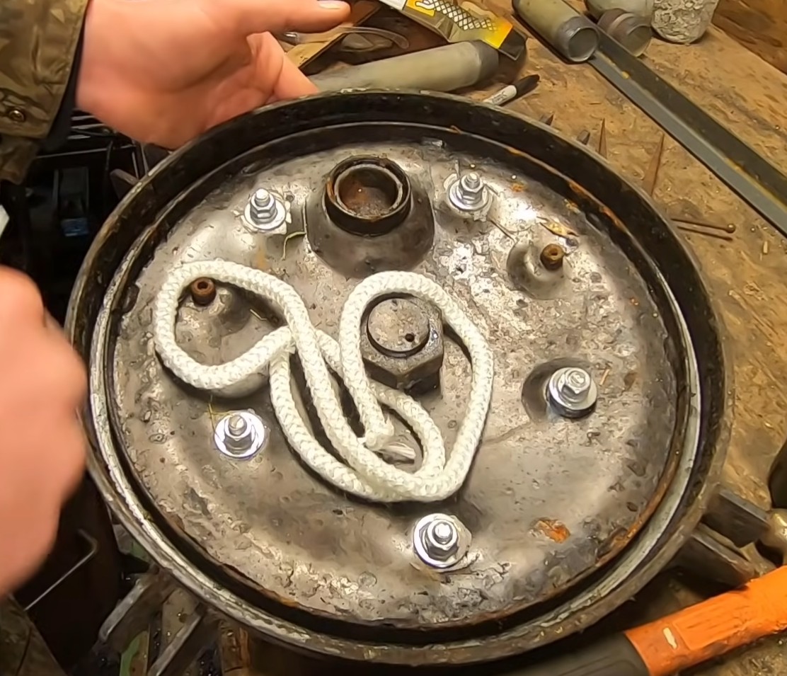 Do okraje víka vložil žáruvzdornou těsnicí šňůru