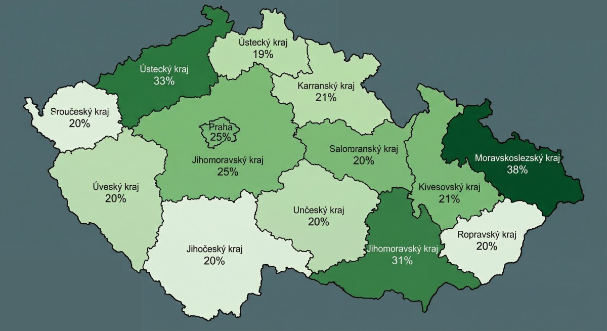 Mapa ukazuje, o kolik se zlepšilo ovzduší za poslední dva roky v jednotlivých krajích