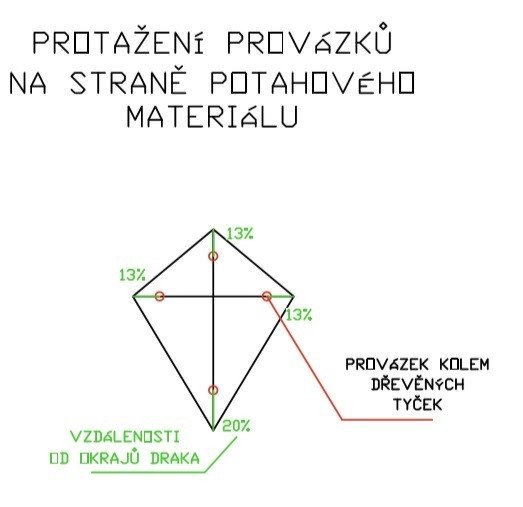 Krok č. 4 při výrobě létajícího draka – Protažení provázků