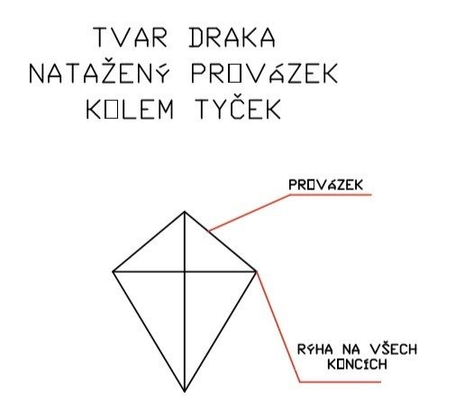 Krok č. 2 při výrobě létajícího draka – Vznik tvaru draka a natažení provázku kolem tyček